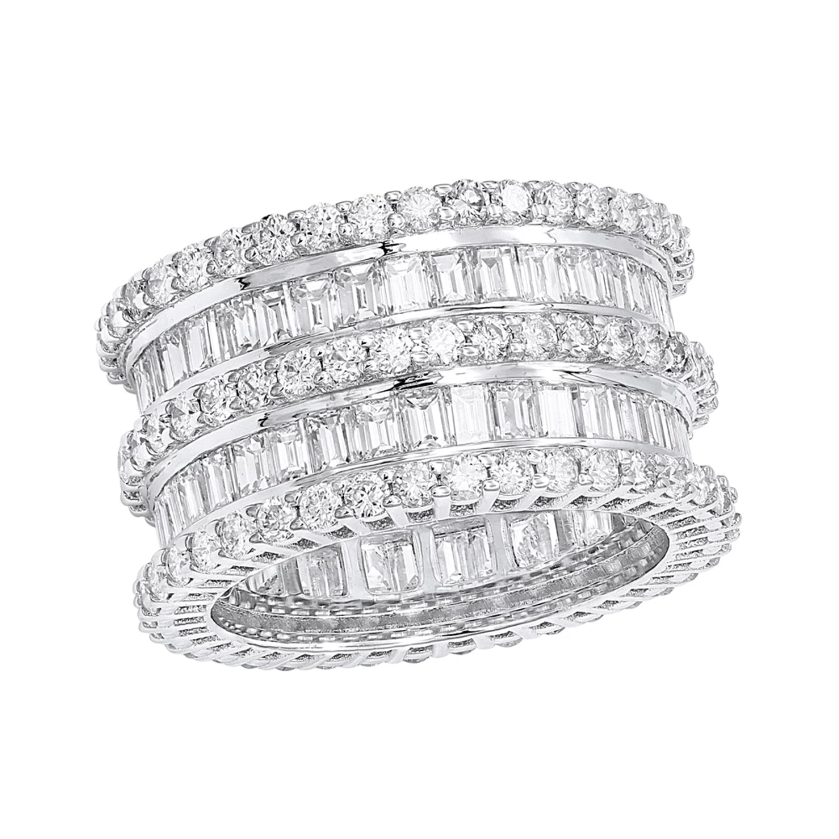 18K White Gold Designer Baguette Round Diamond Eternity Ring 7.8ct By Luxurman