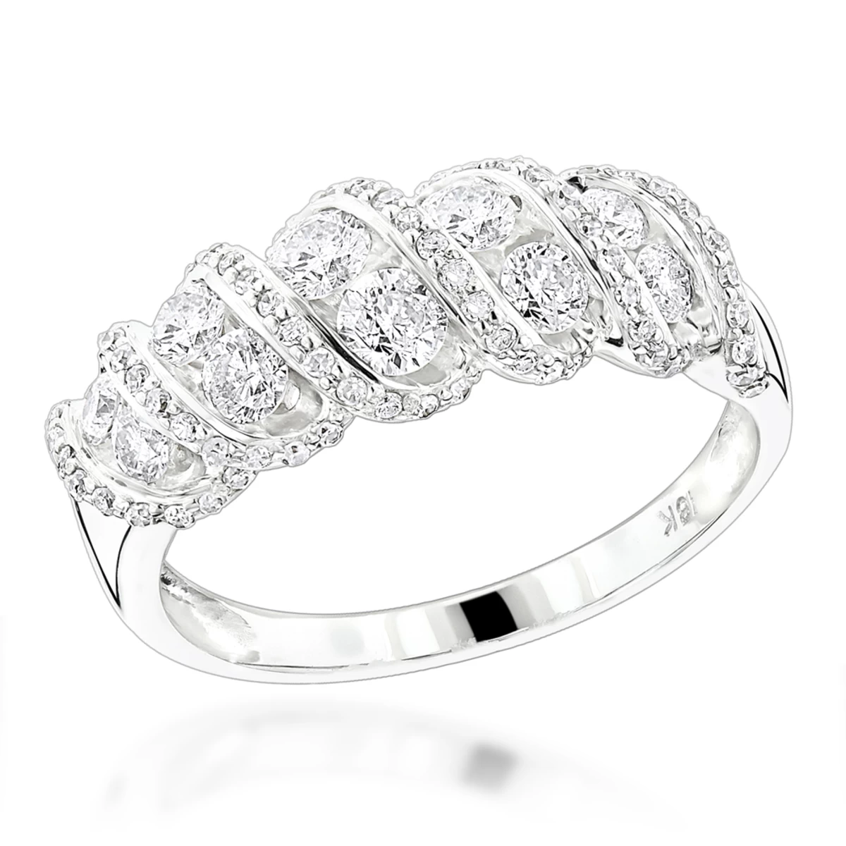 Unique Diamond Wedding Bands: 8 Carat Ladies Pave Diamonds Ring 14K White Gold