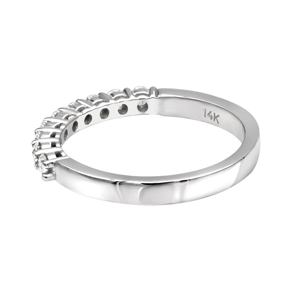 This very classy ladies diamond band by Luxurman features a classic thin band design in 18k gold and is decorated with 9 beautiful round cut diamonds G/VS quality. This Diamond Band for Women can be worn alone or with an engagement ring, also makes a great anniversary ring.