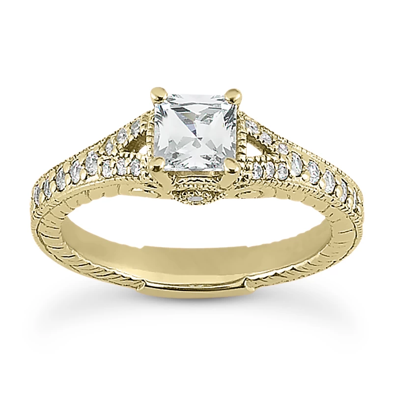 This 18K Gold Diamond Engagement Ring Set consists of a diamond engagement ring and matching band. The engagement ring showcases a 0.75 carat princess cut diamond in the center and 0.26 carats of round diamonds on the sides for a total of 1.01 carats of dazzling diamonds. The band showcases 0.20 carats of dazzling round diamonds. This set is available in Platinum, 18k or 14k yellow, rose, white gold, various sizes, and can be customized with any color and quality diamonds. Please contact us if you would like to customize it.