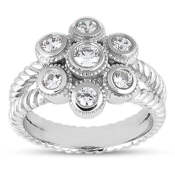 18K White Gold Round Diamond Ladies Ring 0.57ct 6.7mm