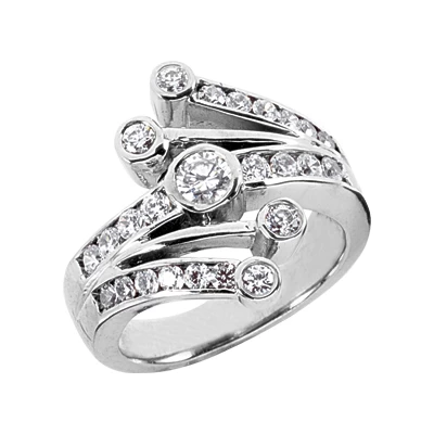 18K White Gold Round Diamond Right Hand Ladies Ring 0.75ct