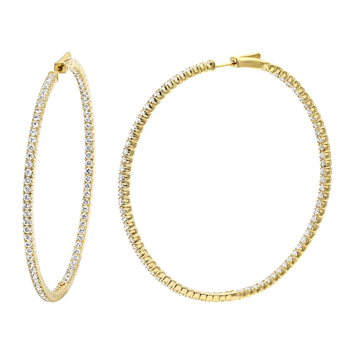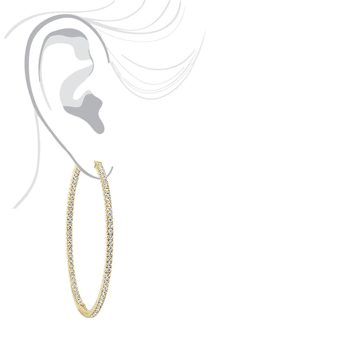 2.5 Inch Inside Out Diamond Hoop Earrings For Women 5 Carat VS Diamonds 14K Yellow Gold