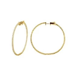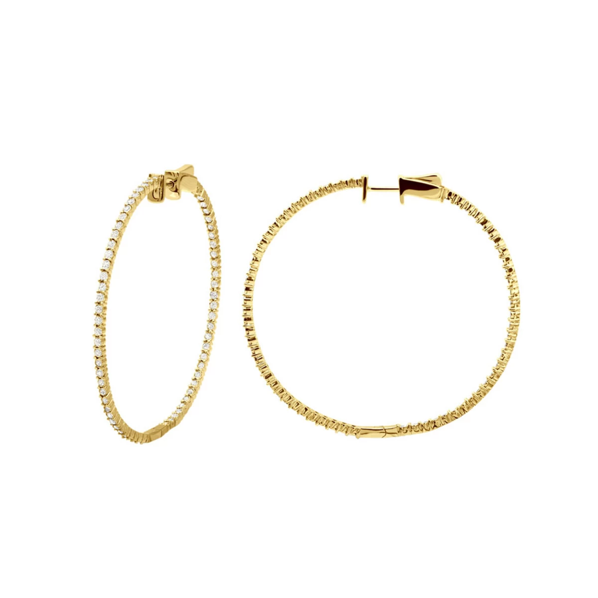 2 Inch Diamond Hoop Earrings 1ct 14K Yellow Gold Inside Out Hoops