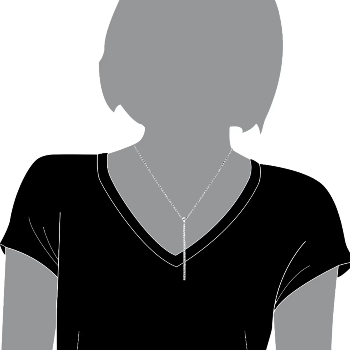 3 Inch Long Diamond Journey Necklace Ladies 14K White Gold String Pendant 0.75Ct