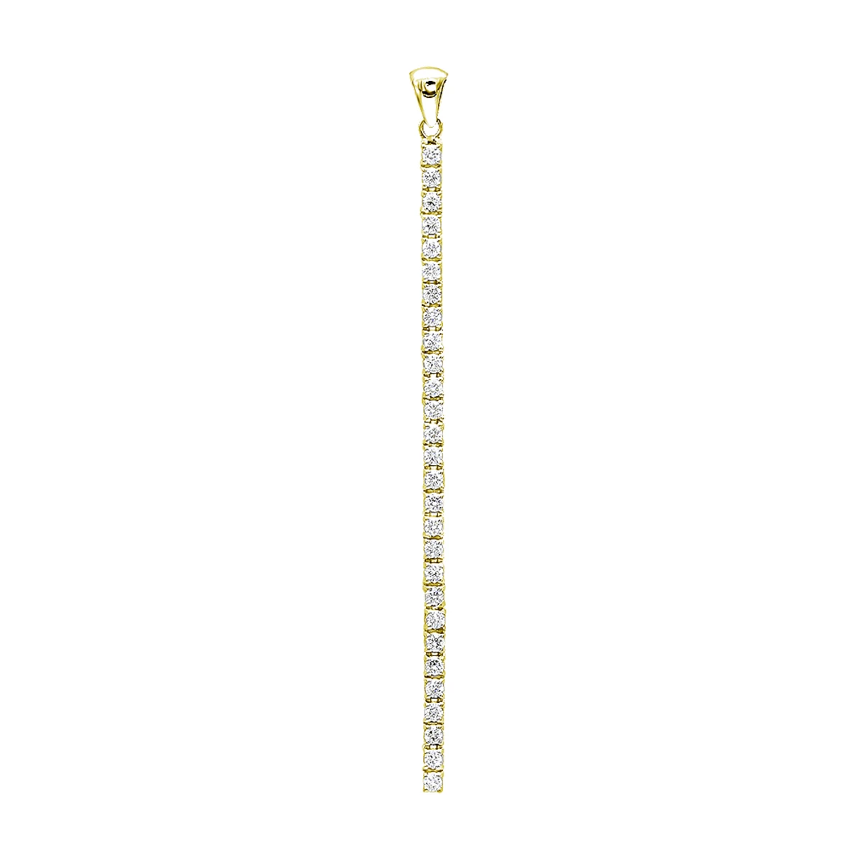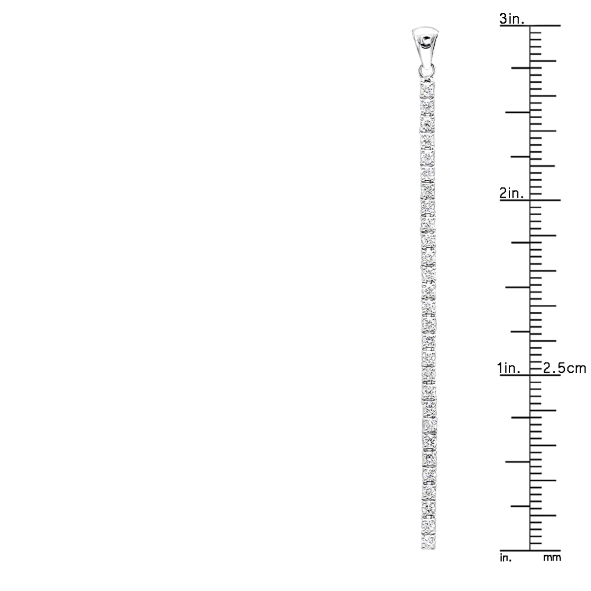 From our ladies diamond pendants and necklaces collection This 3 inch Long Diamond Journey Necklace Ladies 14k Gold String Pendant features and intricate elongated design decorated with 3/4 carat of sparkling round diamonds that will catch anyones eye. Expertly crafted to meet the highest industry standards, this beautiful string pendant weighs about 3 grams, measures 3 inches (75mm) long (with bail), 1/16 inch (2mm) wide and will be an effortless style fit for everyday or evening wear. For a great gift for a loved one or yourself, choose this exceptional jewelry piece crafted from the finest 14k white, yellow or rose gold. Wear it by itself or paired with one of ItsHot.com diamond earrings for the most dazzling look. Matching diamond string earrings are available below. You also can personalize this piece or check we’ve already made and create your own design.