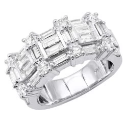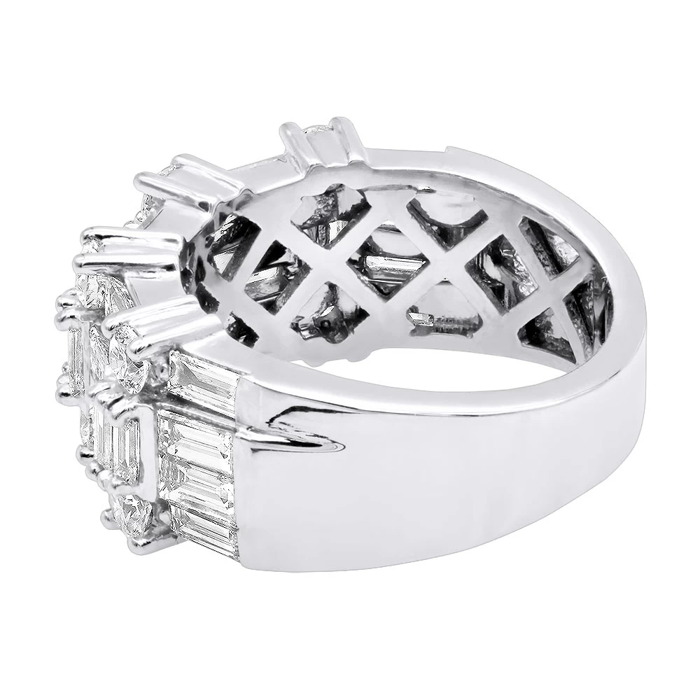 4 Carat Ladies Diamond Ring 14K White Gold Unique Wedding Band Baguette Diamonds