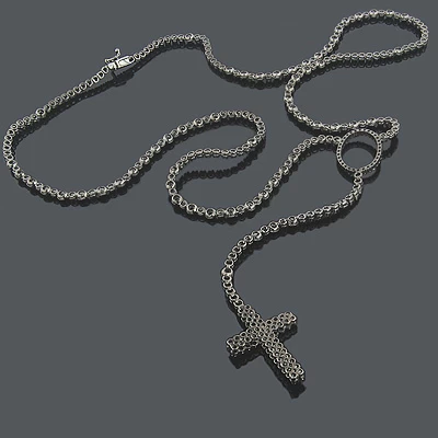 Black Rhodium 10K White Gold Black Diamond Rosary Chain Necklace