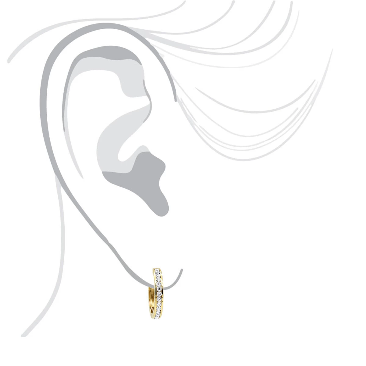 From our unisex diamond earrings collection: If you are looking for classy and multipurpose diamond gold earrings that will look brilliant with your every outfit these 0.6 Carat 1/2 inch Small Diamond Hoop Earrings in 14K Gold (also called diamond huggie earrings as they nearly hug your ear) are your great choice! Sparkling channel set white round diamonds are the centerpieces of each masterfully crafted earring. The measurements for each earring are 1/2 inch (13mm) in length and 1/8 inch (3mm) in width. Classic never goes out of style, that’s why these lovely Diamond Hoop Earrings available in 14K white, yellow and rose gold will make a perfect addition to any jewelry collection in any color. These classy diamond hoop earrings are just the right size for most ears, include a beautiful packaging and make a fabulous gift for the right occasion.