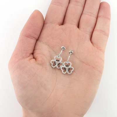 Dangle Diamond Heart Earrings 0.49ct 14K White Gold