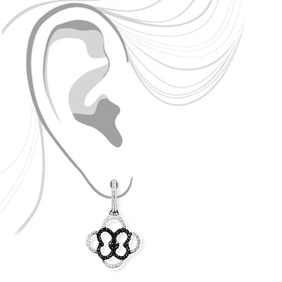Be the first to review “Dangling Flower Earrings With Black And White Diamonds 0.53ct 14K White Gold” Cancel reply