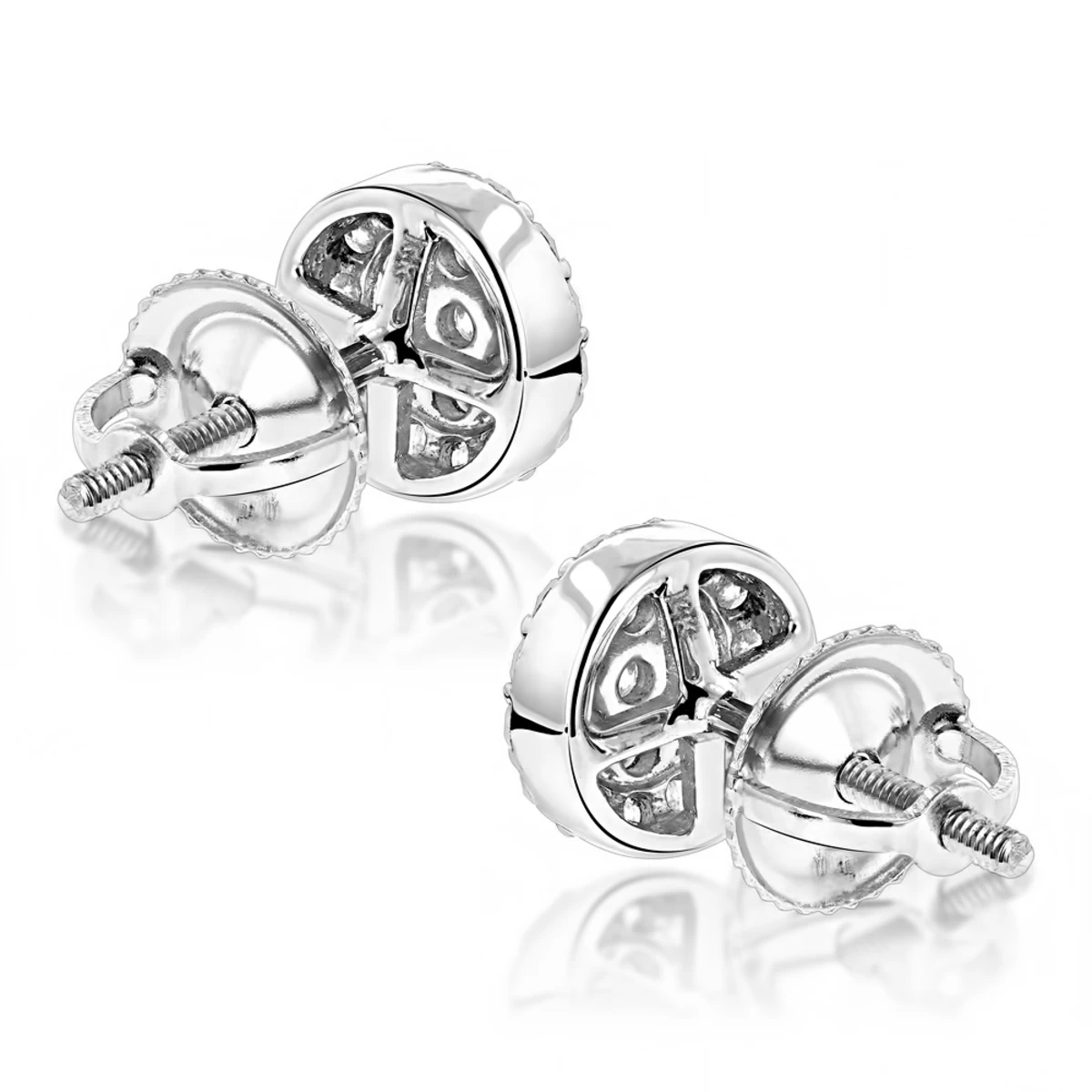 These Designer 14K Gold Cluster Diamond Stud Earrings showcase 0.43 ctw of sparkling round diamonds and screw back closures for convenient wear. Featuring a luxurious design, these unisex diamond stud earrings are available in 14K white, yellow and rose gold; and make a perfect gift for any occasion.