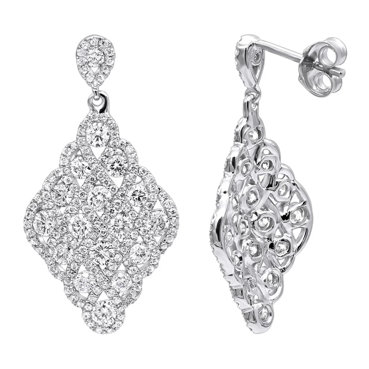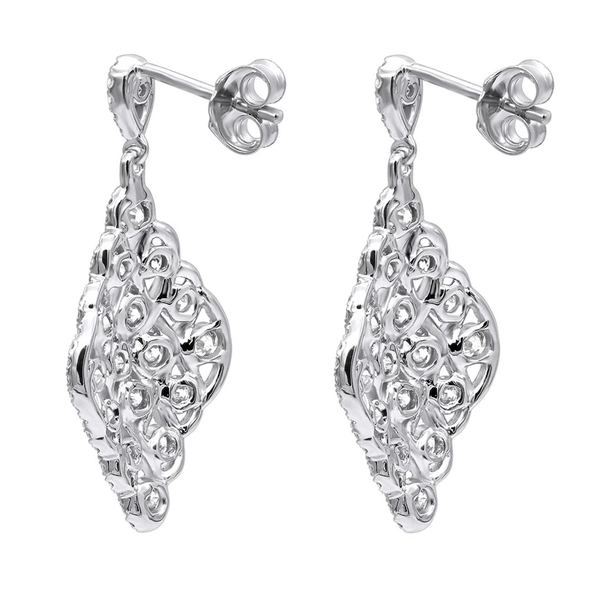 Designer 14K White Gold Diamond Drop Earrings For Women 2.5 Carat Vintage Style