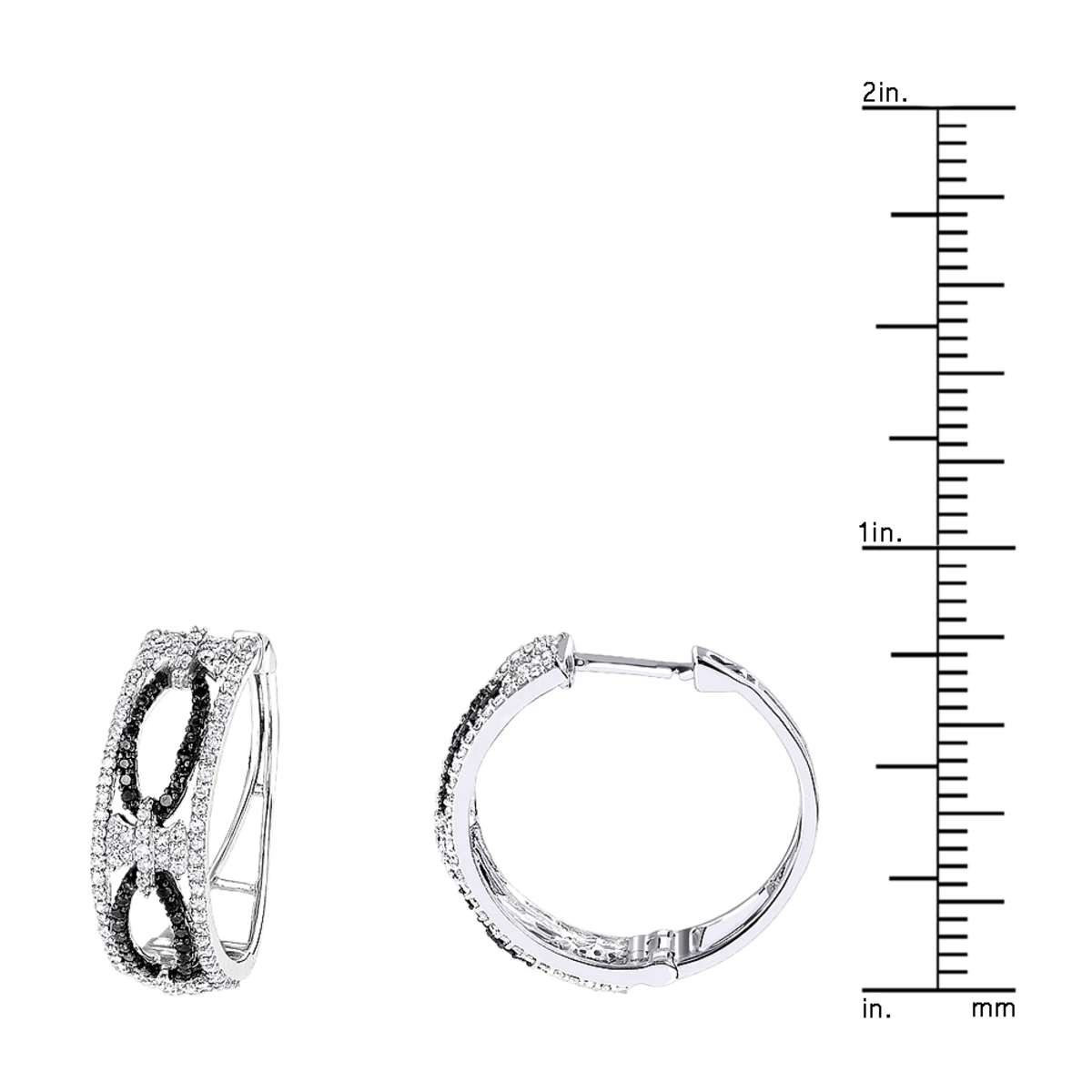 Designer White Black Diamond Hoop Earrings 0.9 Ct 14K White Gold