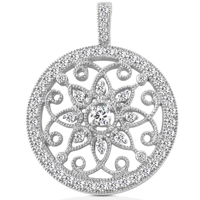 Diamond 14K White Gold Filigree Circle Diamond Pendant 1.15