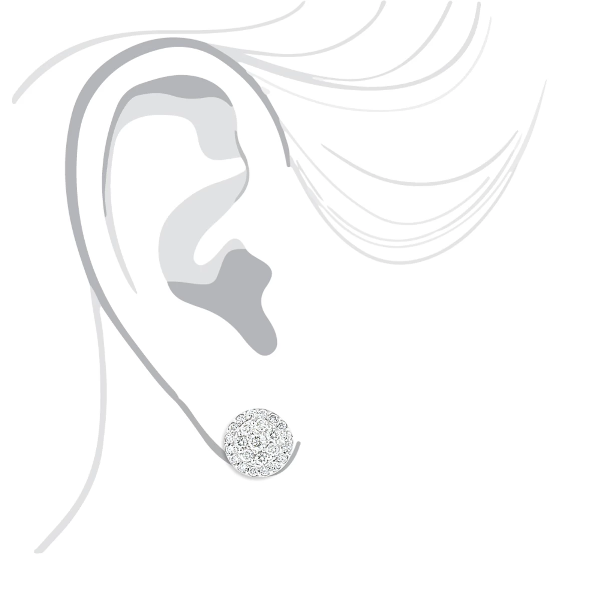 Diamond Cluster Earrings Studs 14K White Gold 1.75ct
