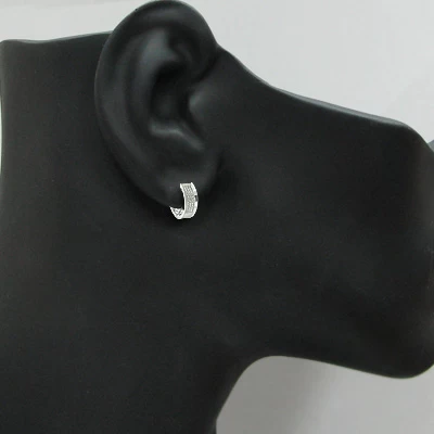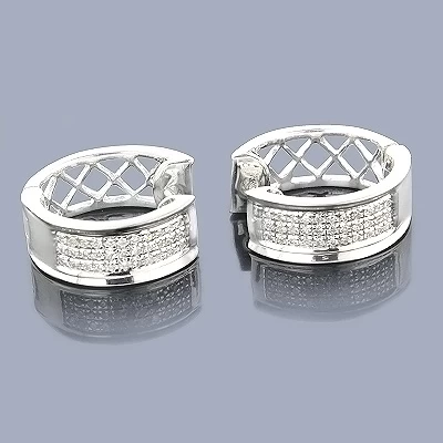 Diamond Hoop Huggie Earrings In Sterling Silver .30ct
