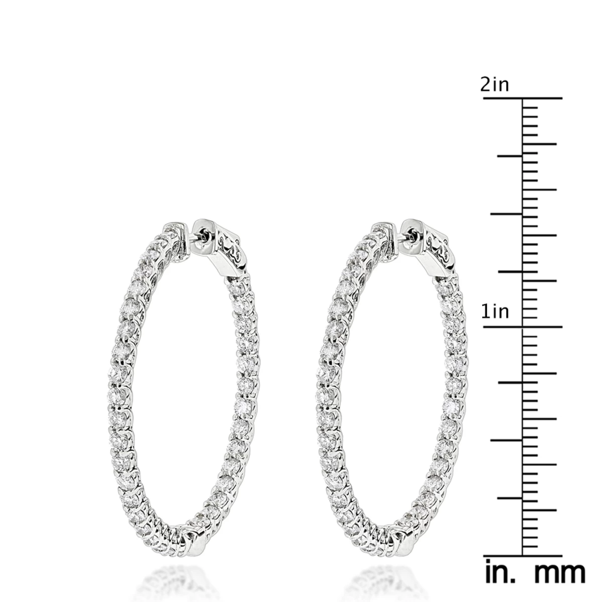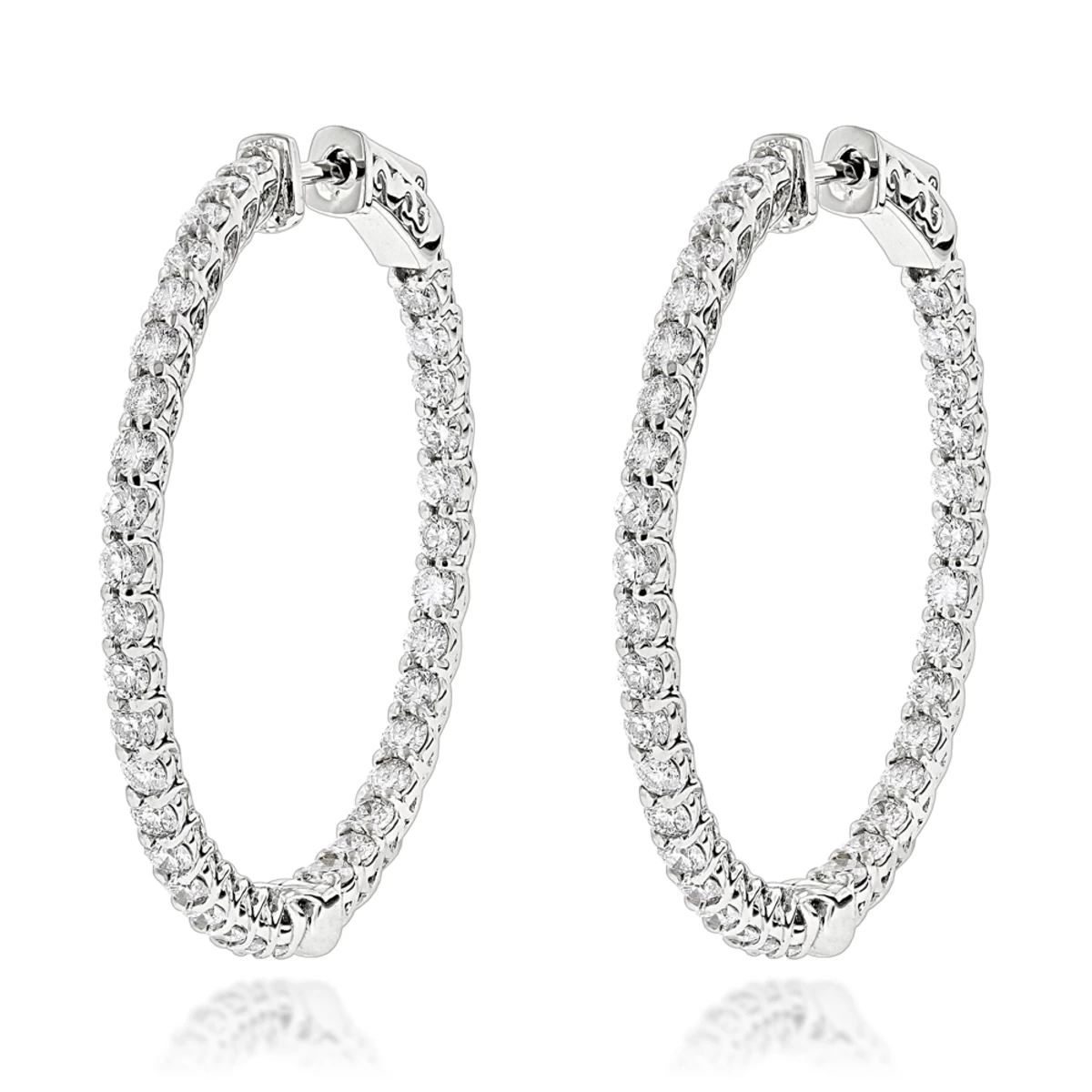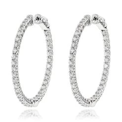 Diamond Hoops 14K White Gold Diamond Hoop Earrings Inside Out 3.5ct
