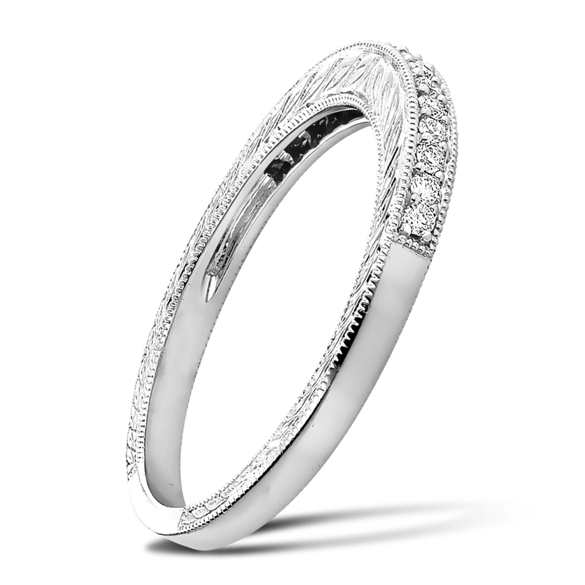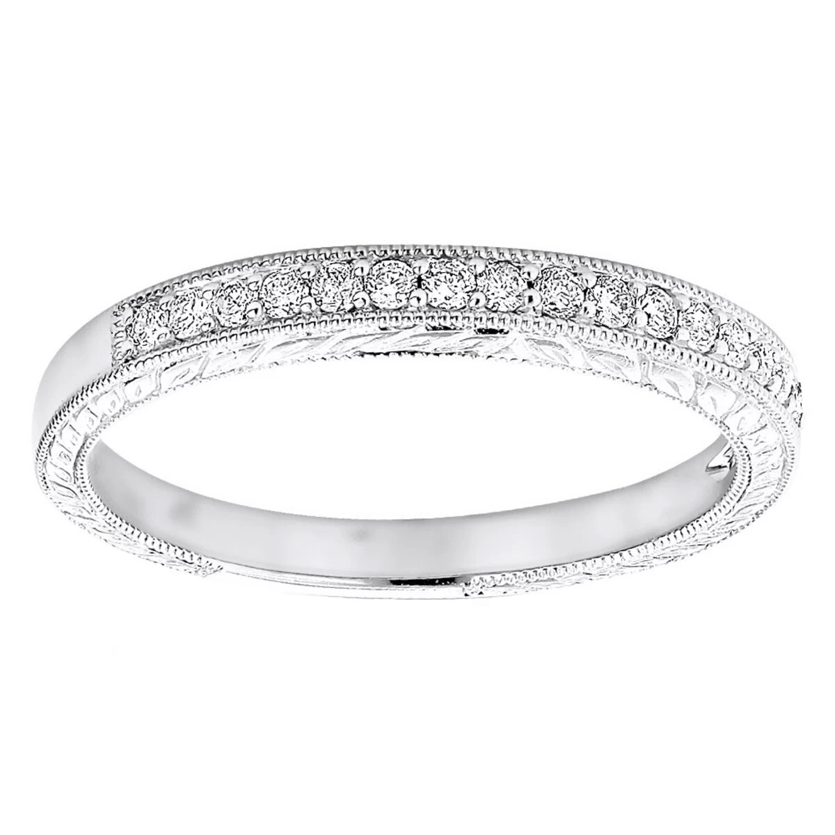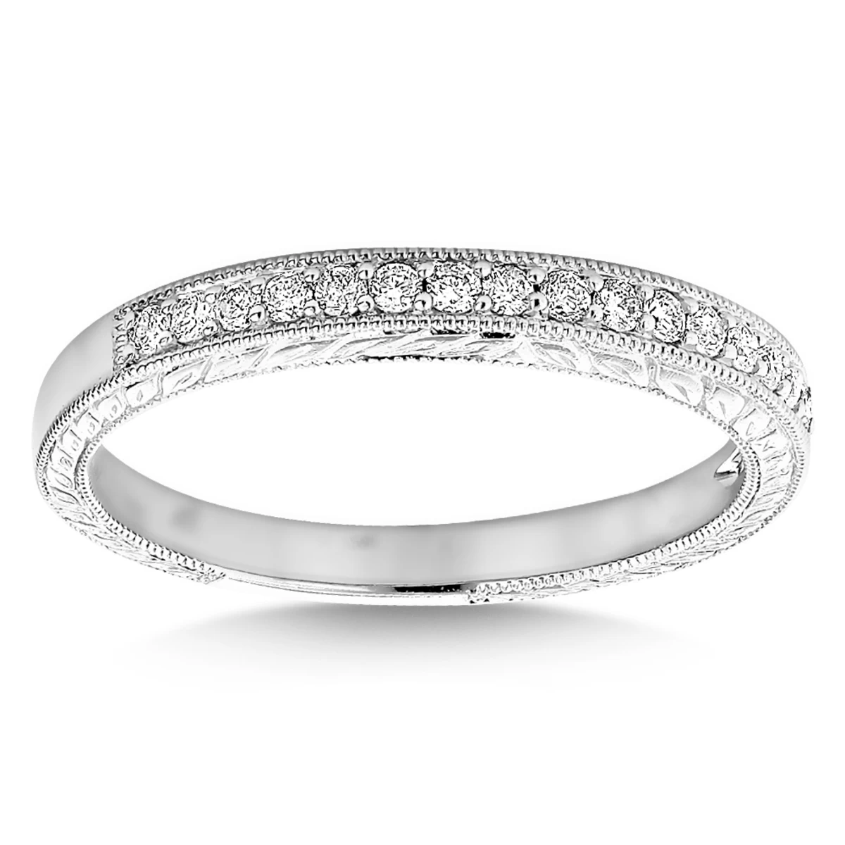 Diamond Wedding Band For Women 1/3ct Thin Antique Style Ring 14K White Gold