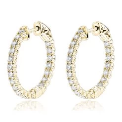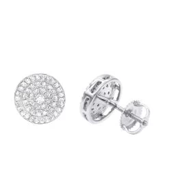 One Carat 18K White Gold Solitaire Round Diamond Bezel Stud Earrings