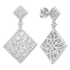 LUXURMAN 14K White Gold Unique Flower Ladies Diamond Cluster Stud Earrings 2.2ct