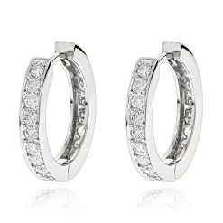 Small Hoops: 14K White Gold Diamond Hoop Earrings 1/2in 0.91ct