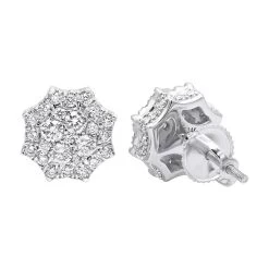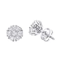 Unique 14K White Gold Large Diamond Stud Earrings Clusters 2 Carat Halo Look