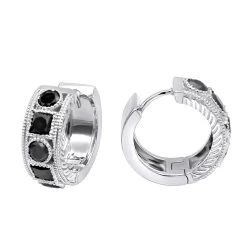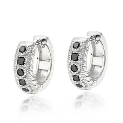 Unique Small Diamond Hoop Earring: Black Diamond Huggies 14K Yellow Gold 0.85ct