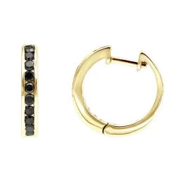 14K White Gold Hoop Huggie Black 0.6 Carat Diamond Earrings For Women