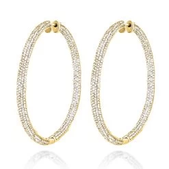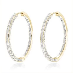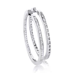 14K White Gold Inside Out Diamond Hoop Earrings For Women 1.5ct