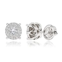 14K Yellow Gold Halo Round Stud Diamond Earrings 0.6ct Clusters