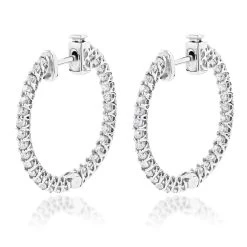 14K Yellow Gold Ruby Hoop Earrings 1/2 Inch 1 Carat Small Huggies