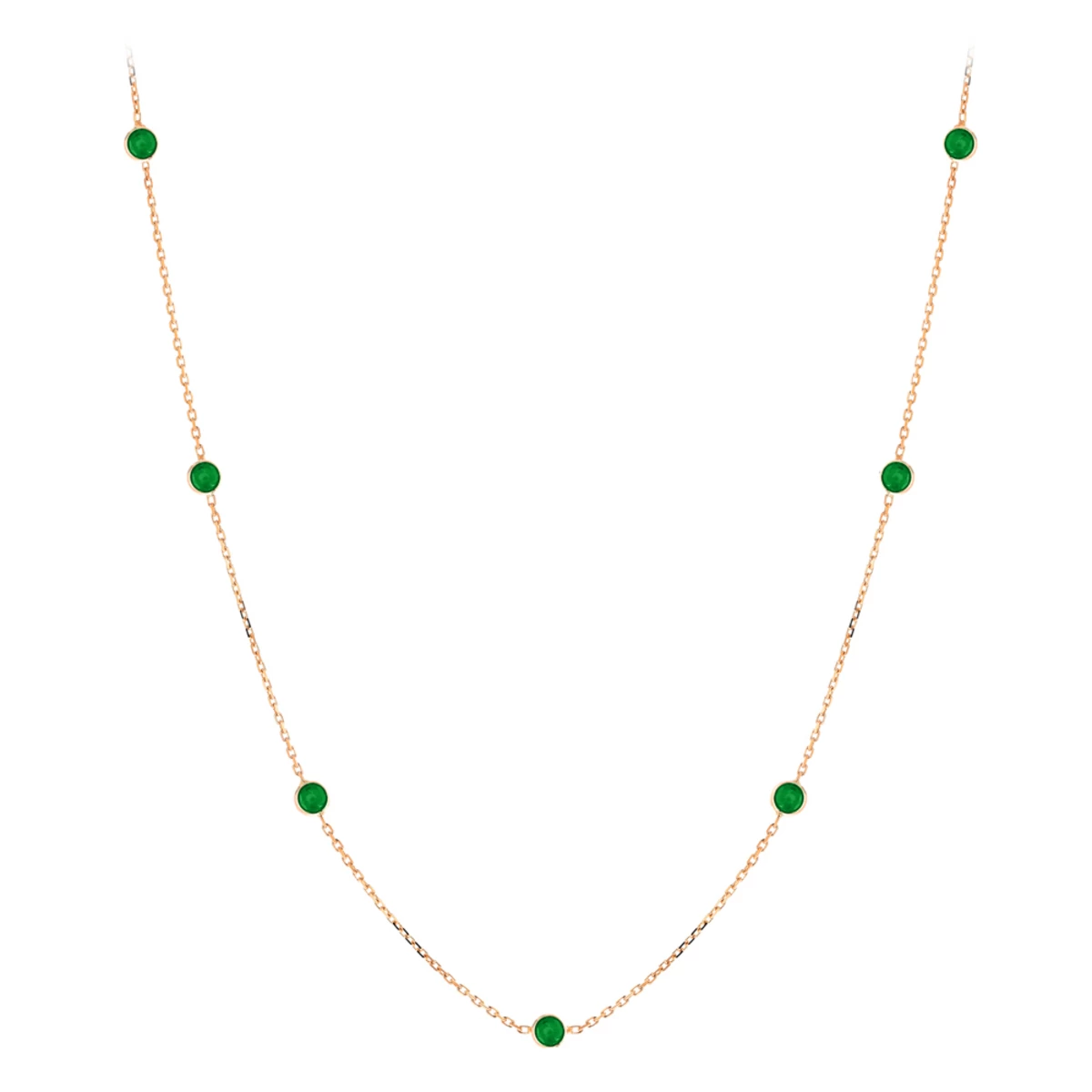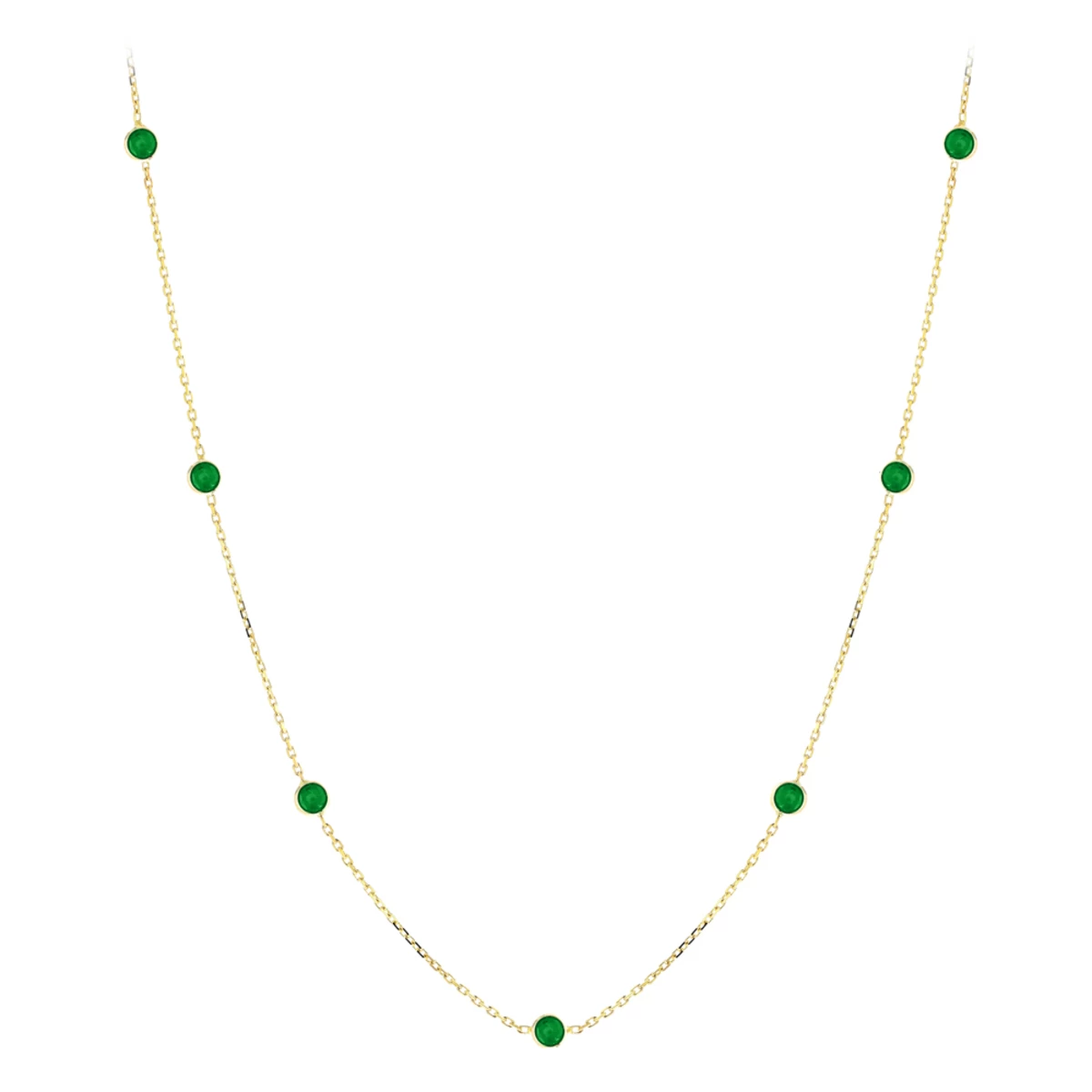 Gemstone By The Yard Chain: 14K Yellow Gold Women’s Emerald Necklace 1.33ct
