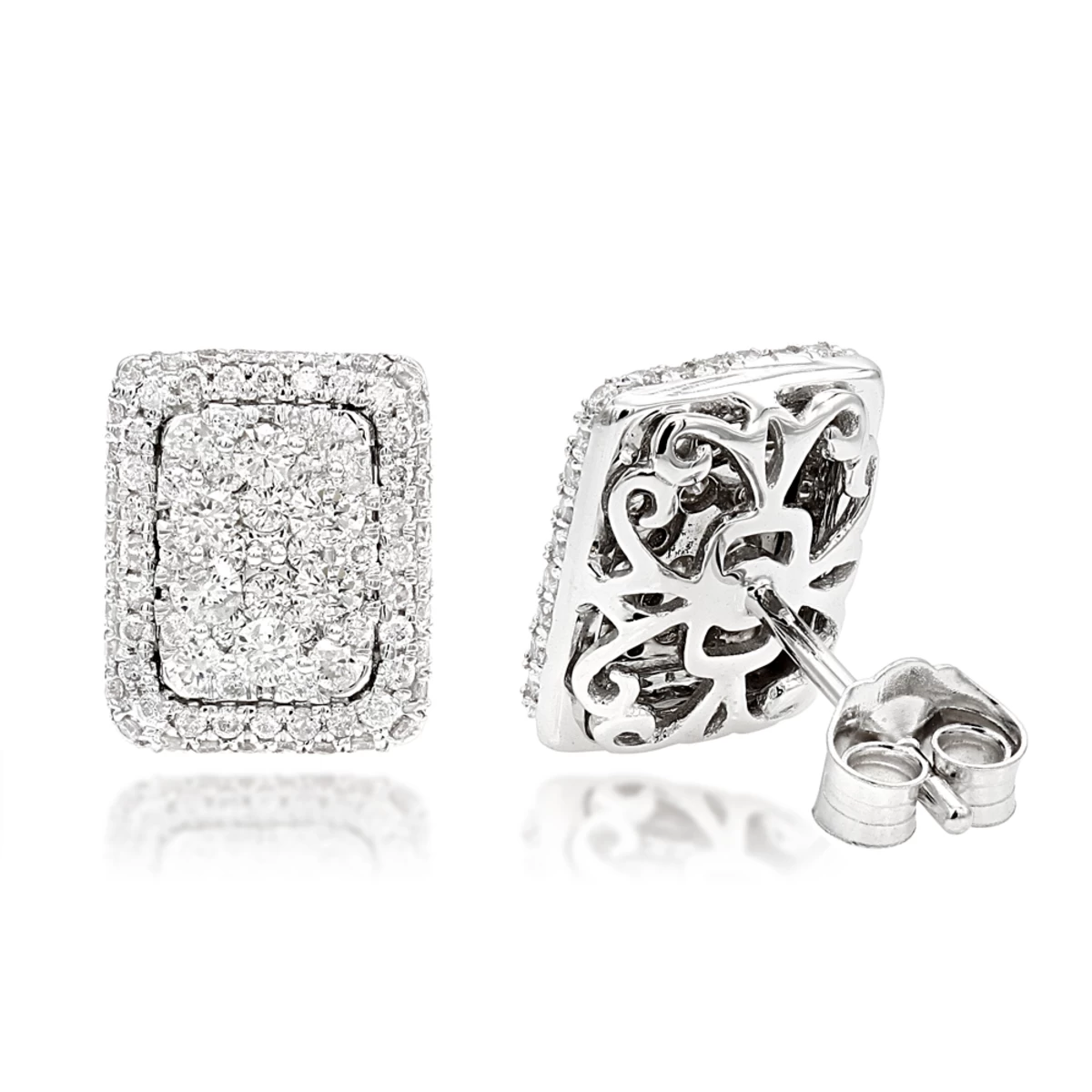 Halo 3 Carat Look Cluster Diamond Stud Earrings 1ct By Luxurman