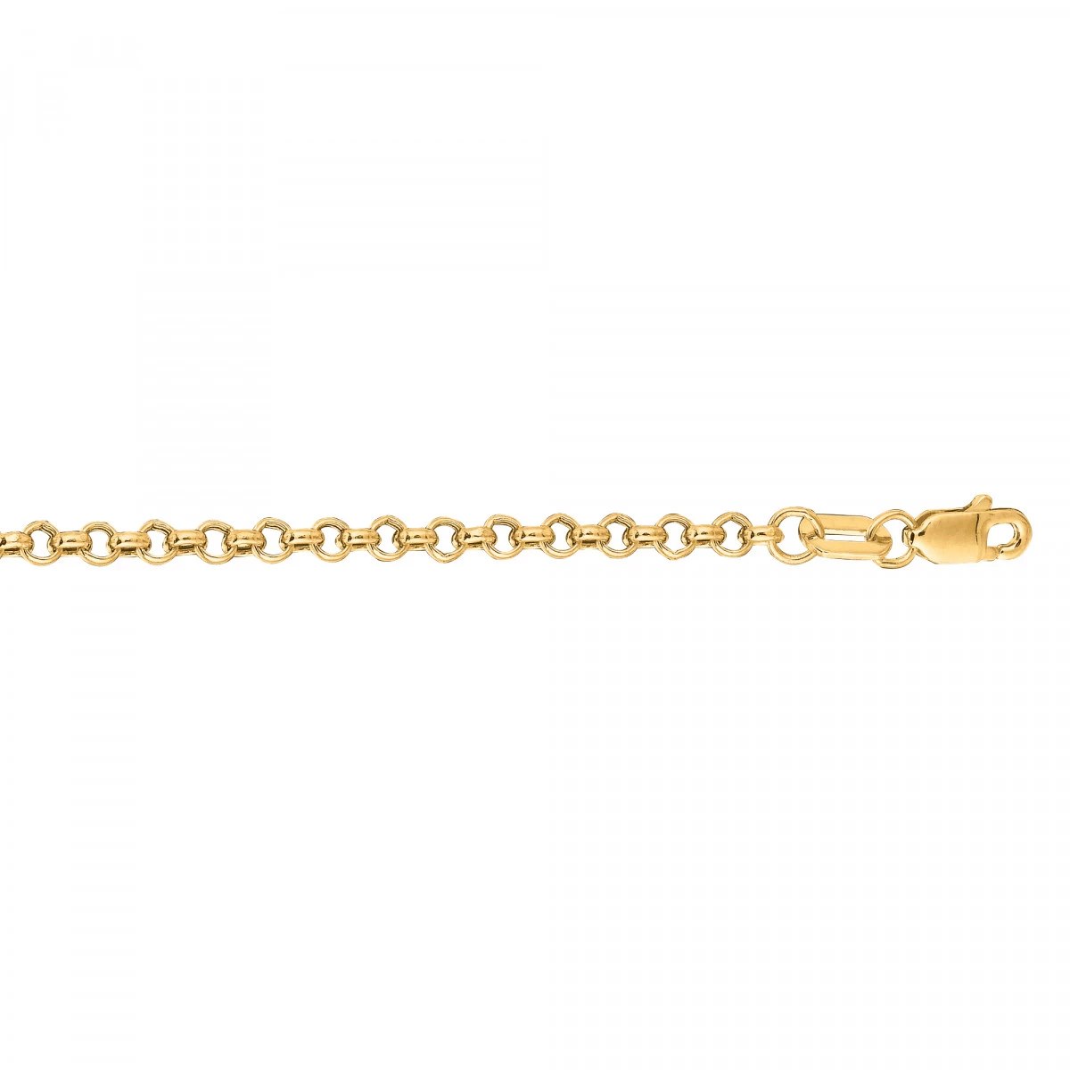 Affordable Hollow Chains: This 14k Gold Rolo Chain For Men & Women is 2.3mm wide, each Rolo necklace is quality made and is available at up to 50% off the retail price. Approximate weights for each length: 7in.-1.4gr., 16in.-2.5gr., 18in.-2.8gr., 20in.-3.1gr., 22in.-3.4gr., 24in.-3.7gr., 30in.-4.7gr.