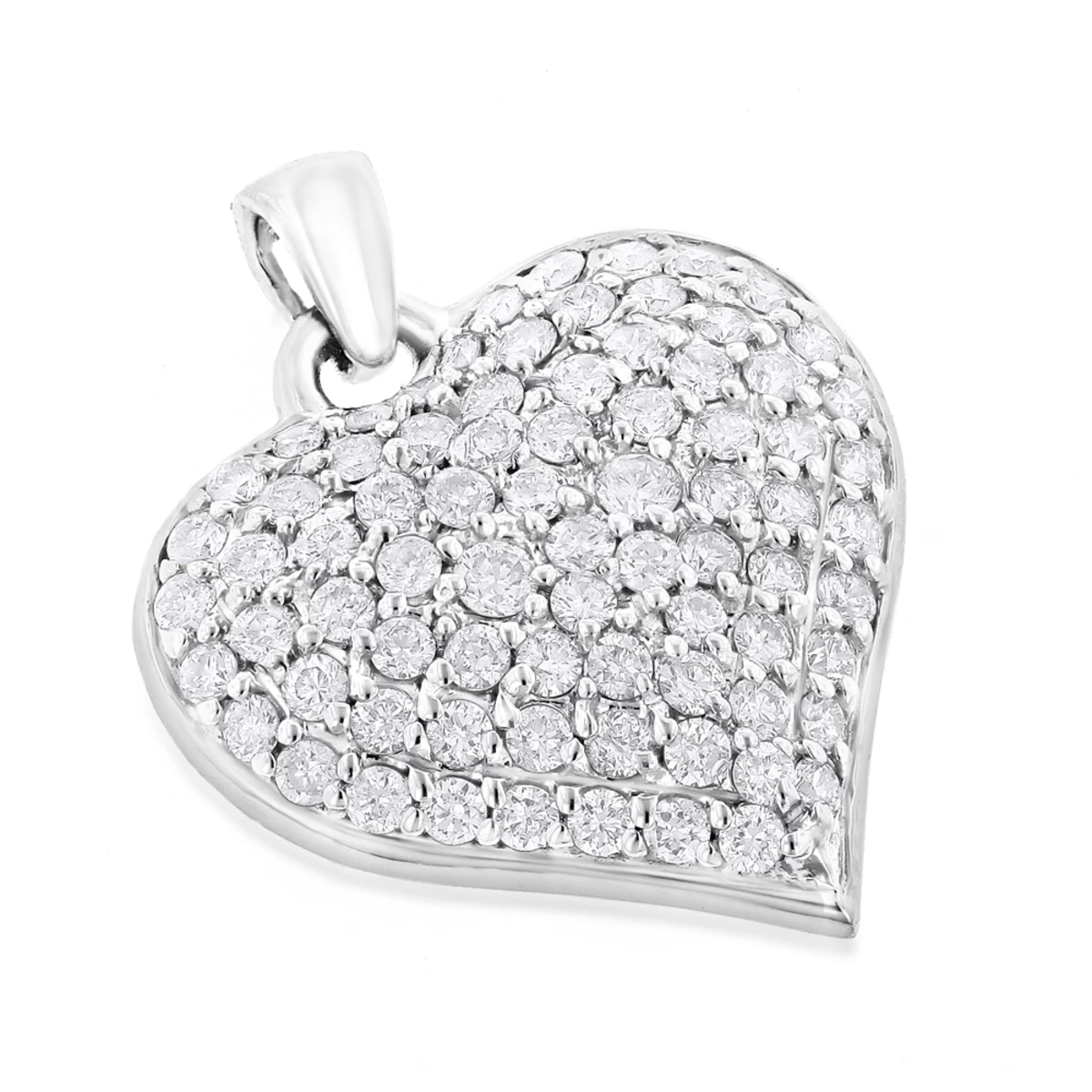 Ladies Puffed 14K White Gold Diamond Heart Pendant 1.5ct