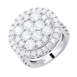 This Large 5 carat Diamond Ring for Women in 14k Yellow Rose or White Gold features 5 carats of high quality natural round diamonds in cluster setting. This women’s diamond ring is available in 14k yellow, rose, white gold, as well as Platinum and 18k gold as a custom order and can also be customized with any color and quality diamonds. Please note: it will take us 3-5 business days to make this ring for you so please plan accordingly. Please contact us at 212-398-3123 if your size or desired option is not listed.