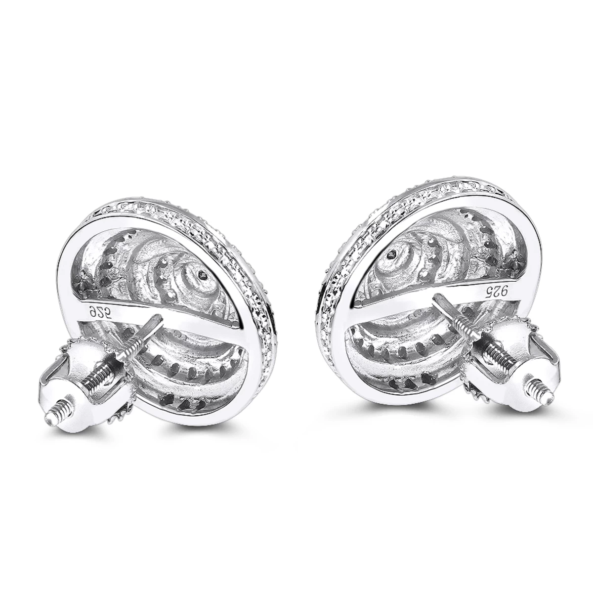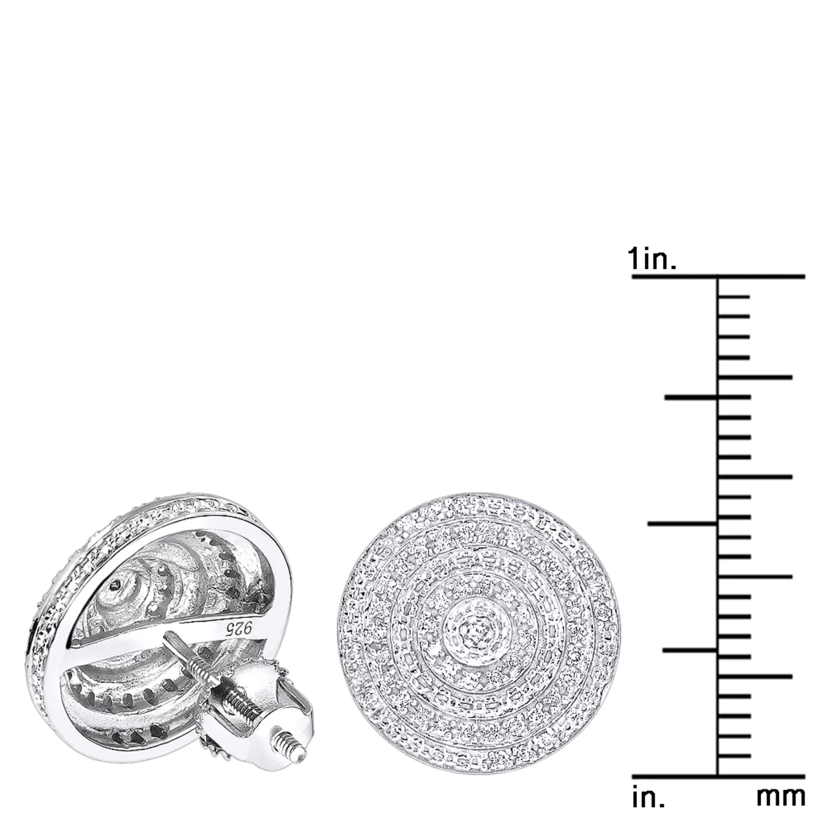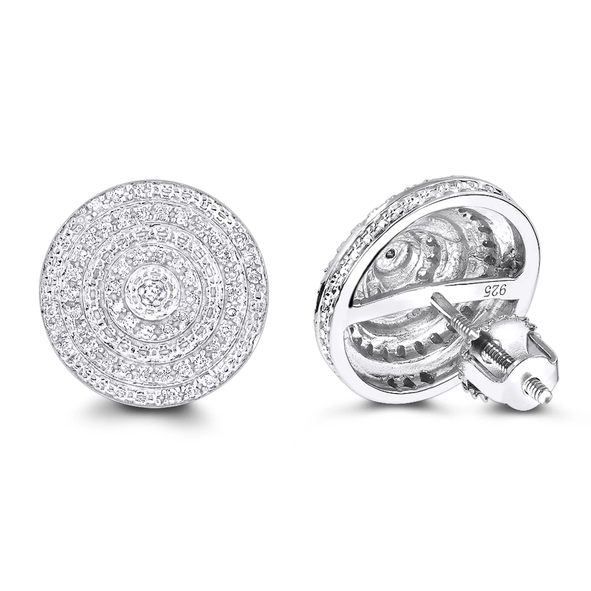 From our women’s and men’s diamond earrings collection These unisex 3-D Diamond Circle Earrings in sterling silver showcase 0.22 carats of genuine pave set round diamonds, these diamond stud earrings have a screwback closures for secure wear and come in a nice gift box ready to be given to that some one special.