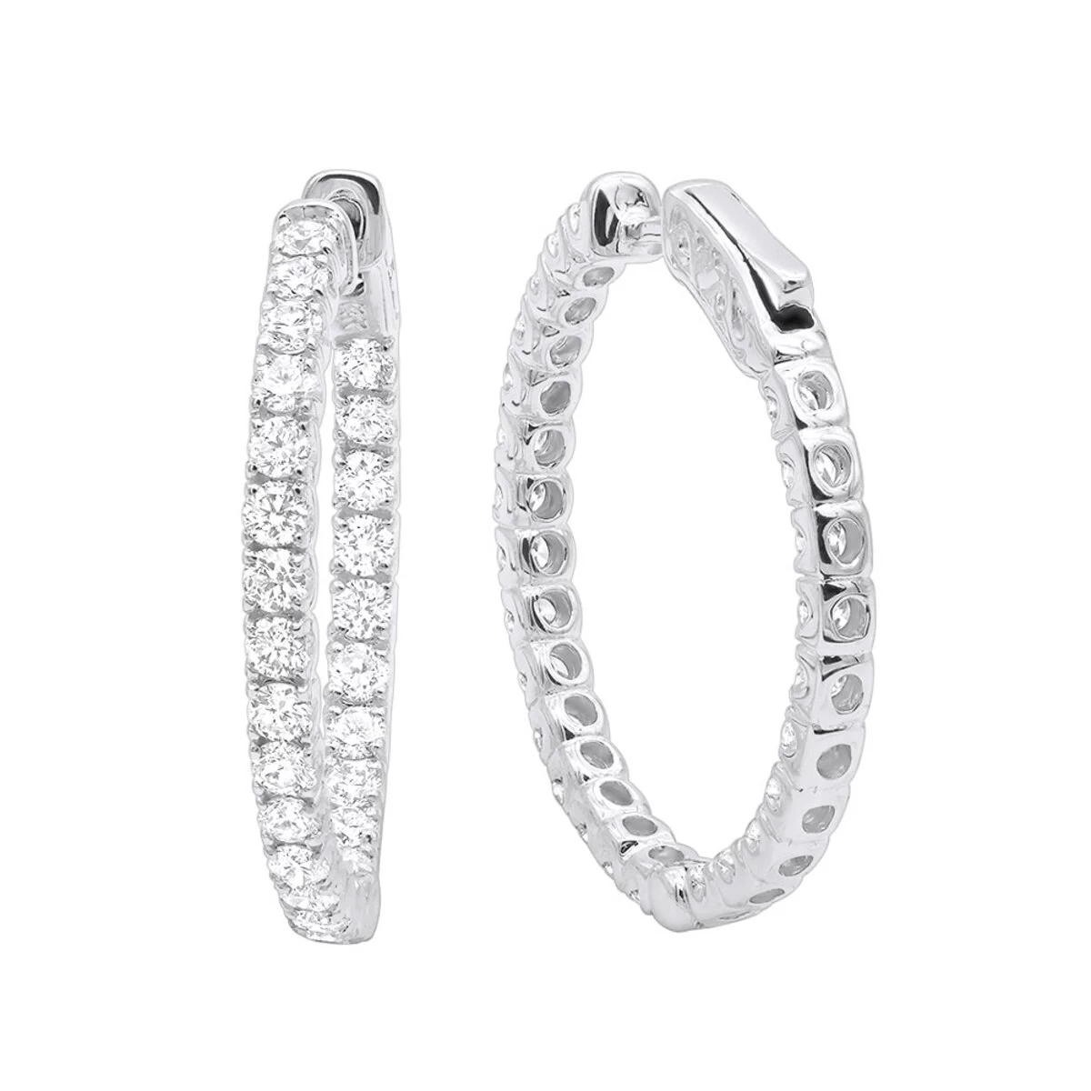 Large Diamond Hoop Earrings Inside Out 2.00ct 14K Yellow Gold