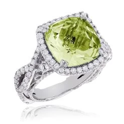 Fine Gemstone Jewelry: This fabulous Lemon Quartz Diamond Cocktail Ring showcases a magnificent 11 carat natural lemon quartz and 1.3 carats of genuine diamonds. Featuring an elegant halo design and a fine craftsmanship, this lovely cocktail ring is available in 14K white, yellow and rose gold.