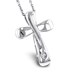Luxurman Love Quotes Necklaces: Sterling Silver Small Diamond Cross Pendant