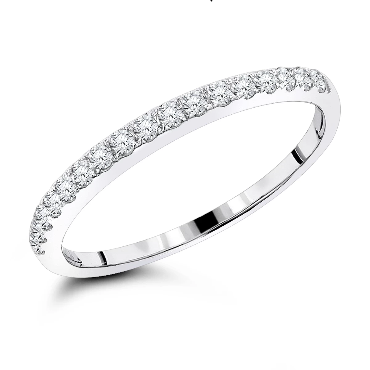 Luxurman Stackable 14K White Gold Thin Diamond Wedding Band For Women 0.25c