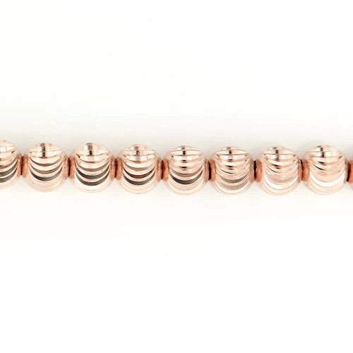 This 10K Rose Gold Moon Cut Chain is 5mm wide and is secured with a lobster claw clasp. Featuring a luxurious bright polished finish for extra shine, this textured chain is available in 10K white, yellow and rose gold and in different chain lengths.