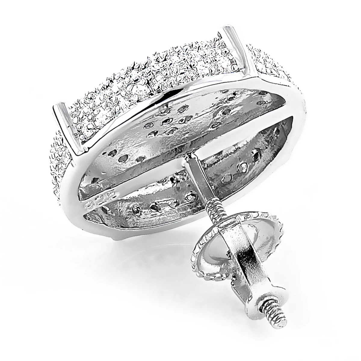 These Pave Diamond Circle Earrings Studs in sterling silver showcase 0.24 carats of genuine diamonds pave set in rounded sterling silver shape, earrings feature screwback closures for secure wear.