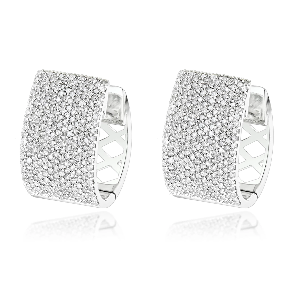Pave Diamond Earrings For Women 14K White Gold 1 Carat Small Wide Hoops