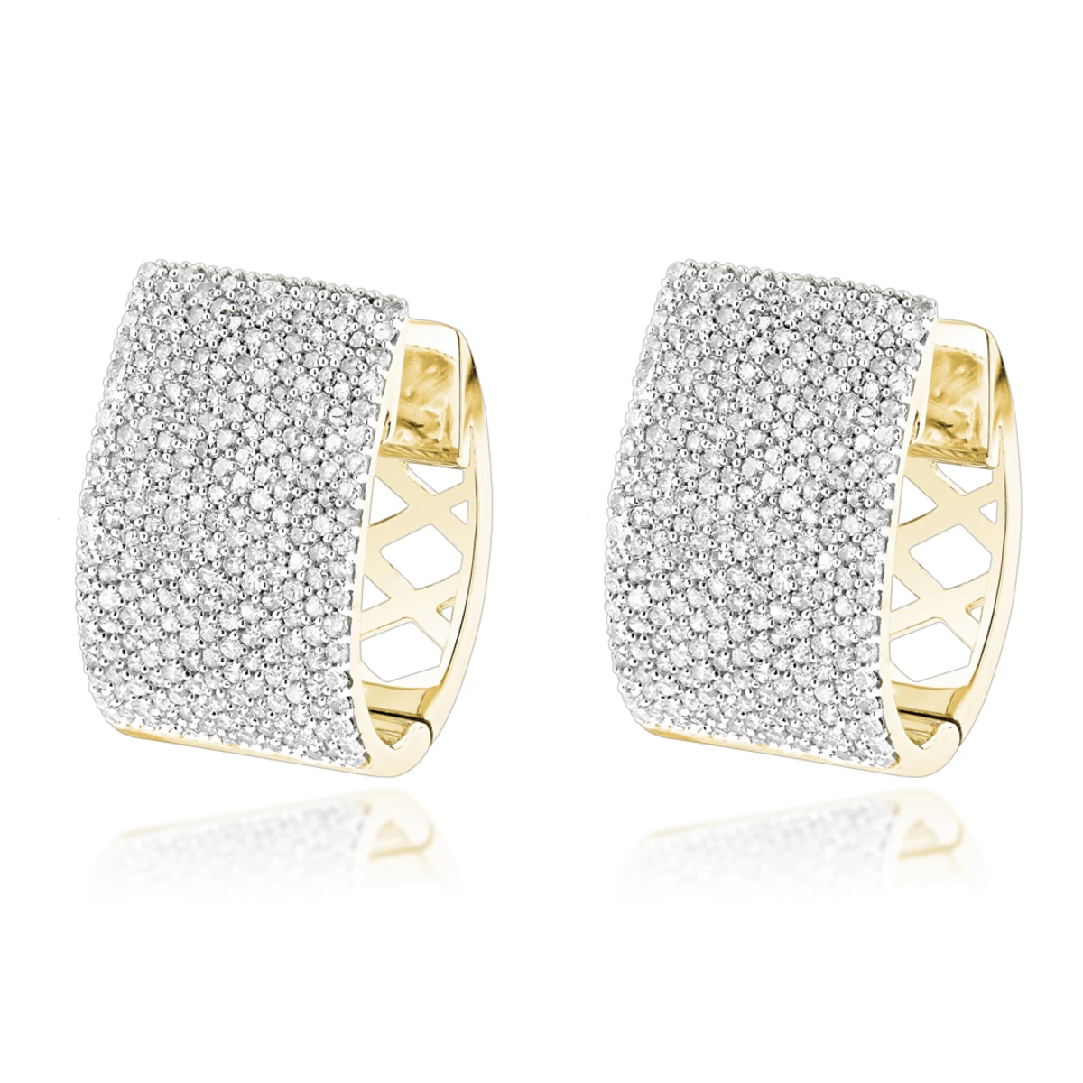 Diamond Hoop Earrings: These cute Pave Diamond Earrings for Women are done in 14K gold and showcase small wide hoops design fully paved in 1 carats of genuine diamonds. Featuring a versatile design and a highly polished gold finish, these lovely small diamond hoop earrings are available in 14K white, yellow and rose gold.