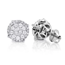 Pave Diamond Stud Earrings 0.9ct 14K White Gold