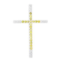 14K Yellow Gold White And Yellow Diamond Cross Pendant 0.72ct