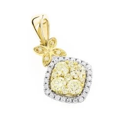 14K White Gold White And Yellow Diamond Ladies Flower Pendant 2.3ct