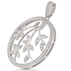 14K White Gold Diamond Circle Pendant For Women By Luxurman 0.33ct